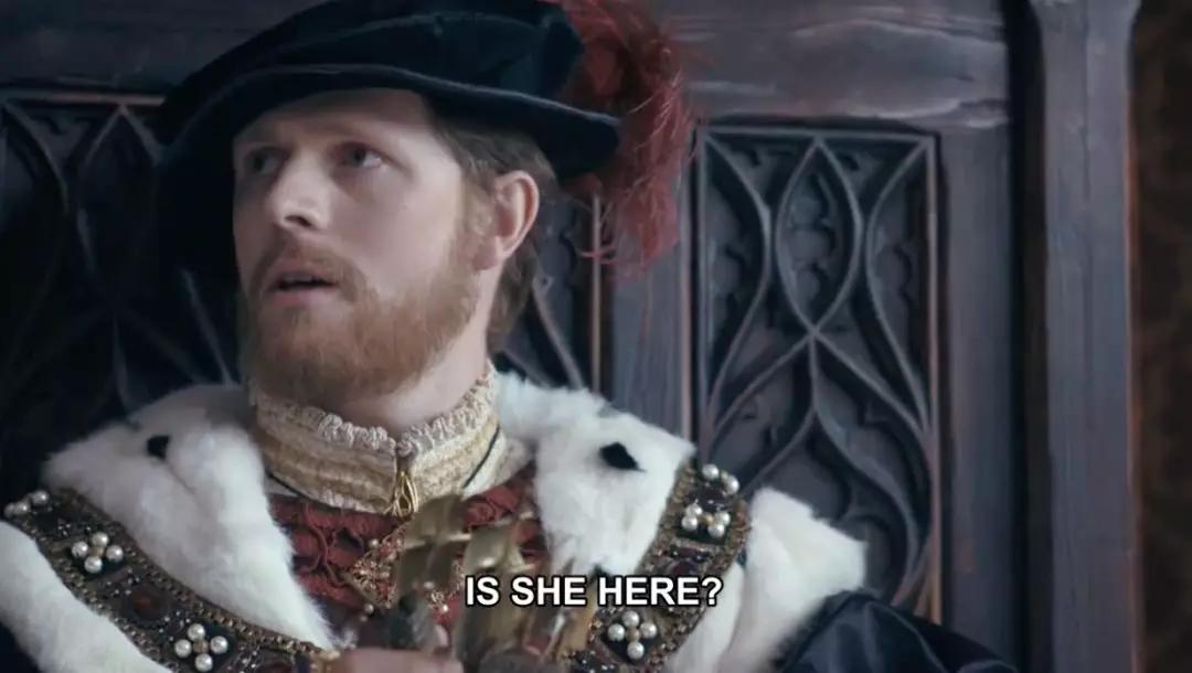 而亨利八世则想用他独特的英国幽默来迎接他的新妻子,当他冲进房门时却吓了他的未婚妻一跳。