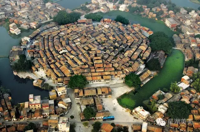 八卦村从高空看下去,形如一个八卦,是以《周易》中“乾坤震巽坎离艮兑”建成的一个古村落,村内有“开村榕树”、门楼等,这也是道家天、地、人和谐统一的一种体现。