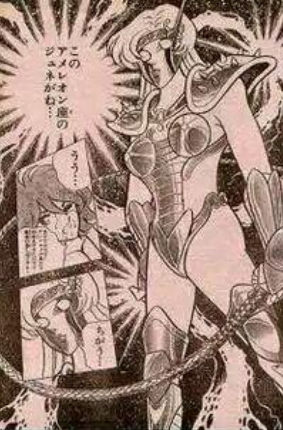 拥有变色龙座圣衣的介位姐姐,名叫珍妮,作为瞬的同门师妹,她在圣斗士中的戏份并不多,但是在少年jump杂志连载时期,她在日本青少年中的人气也是非常高的。到了单行本漫画和动画中,编辑出于对低龄观众负责的考虑,让车田正美老师为珍妮添上了秋衣和秋裤,不过这并不会让我对这位角色的喜爱削减分毫,毕竟我已经见过星辰大海,早就学会了透过现象看本质。