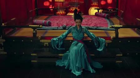 莲花精亮相,红色布景的房间震慑心魄,诡异横生,却自由一番精致在里面,红色布景与莲花精一身蓝裙相融合,色调搭配浓烈却又清丽。