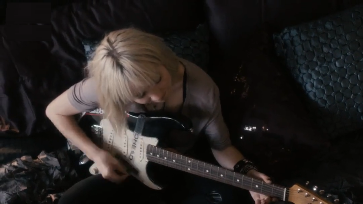 过了一段时间,乐队换了吉他手(也就是本片的男主,大反派)女主也走出失去哥哥的阴影,鼓起勇气,重新站在舞台上了。
