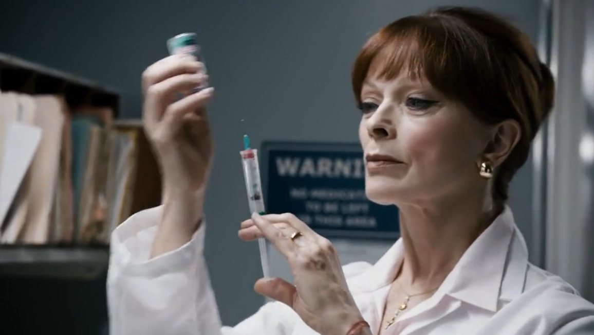 此时,镜头切换到反派男主的妈妈,也就是那个女佣。她混进医院准备干掉女主一家。。。。。。电影戛然而止!