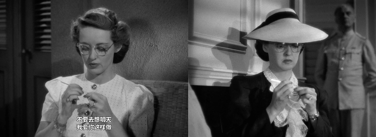 影片的剧本对角色的行为动机、心理逻辑的交代是较为单薄的,但贝蒂·戴维斯用自身的形象特征与表演去丰富完善了这个角色。无论是早期的《人性的枷锁》还是后期的《兰闺惊变》,贝蒂·戴维斯的角色从来不同于传统女性般的柔弱、娇嗲,对传统父权夫权展示出服从、归顺;恰恰相反,她独立坚强,叛逆恣意,总是扮演一些气场强悍、咄咄逼人的角色,这种“现代女性意识”自内而外地散发。