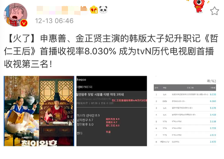 12月12日,由申惠善、金正贤主演的韩剧《哲仁王后》终于开播了。这部剧改编自网络剧《太子妃升职记》,从开拍就噱头十足。结果首集播出不到20分钟就翻了车,编排中国历史还诋毁丑化我国外交官。