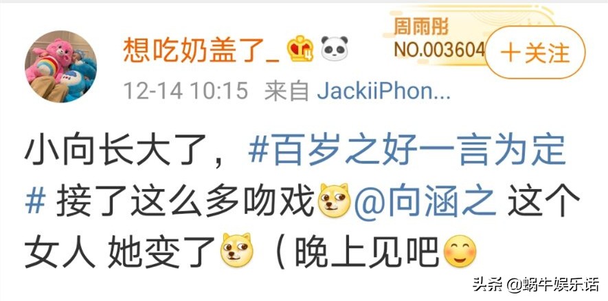 而且,在这部剧中因为和男主之间的吻戏比较多,她的粉丝还感叹“小向长大了,这个女人她变了!”。