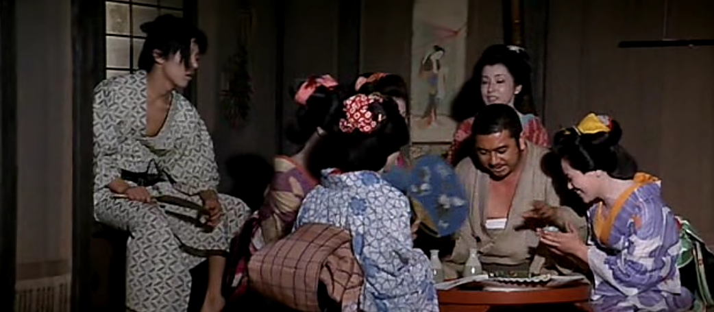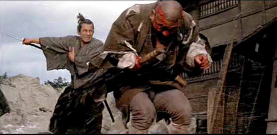 在这部电影中三船敏郎饰演酒鬼武士用心棒,其人颓废潦倒,经常喝得迷迷糊糊,举止令人发笑,与滑稽的座头市相得益彰,是位亦正亦邪的人物。