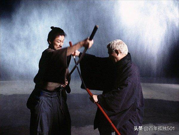 影片中有一段座头市与黑帮雨中大战的场面,那种由暴力制造出的诗意节奏,让动作和雨滴完美配合,使整部影片充满了华丽的色彩。战斗结束,雨水和血水相溶于山谷,再加上无比凝重的音乐,悲怆之美更是尽显其中。
