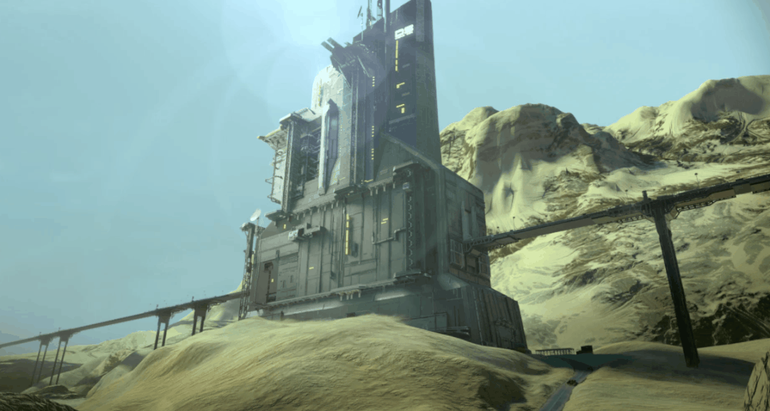 ds公司是一家科技公司,从事ai研究开发工作,下面这幅概念图中呈现的是ds的废弃驿站,可以看出还有高架轨道穿过驿站。这所驿站是负责运输负责补给的停靠站,建立在沙漠之中,整体的色调也是偏暗黄的,风起尘飞扬,将一些秘辛永久的封存在这里。