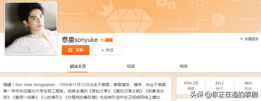 陈星宇简评:son yuke跟esther二搭的新剧《蓝色海洋之心》开播在即。他主演泰剧《王子变形计(泰版王子变青蛙)》也于今年开机。作为中国观众最早一批认识的泰国明星,son越来越熟练用微博与中粉互动了,甚至已经开始发中文,分享汉语视频了。