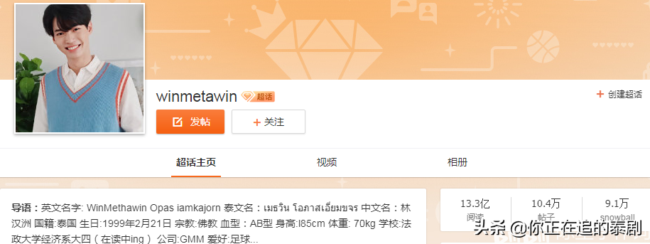 陈星宇简评:win metawin凭借2020年泰剧《只因我们天生一对(假偶天成)》火速蹿红,不仅在泰国火,在中国大陆网络上也拥有许多粉丝。中粉爱称他为赢仔,认为他是人美心善可奶可盐的小仔娃。作为正当红的泰国gmmtv旗下的顶流艺人,今年他参与了超强ip《泰版流星花园》,饰演具有挑战的西门角色。一年不到的时间,积累了90万中国粉丝,超话阅读破十亿,这足以说明了win的高人气。