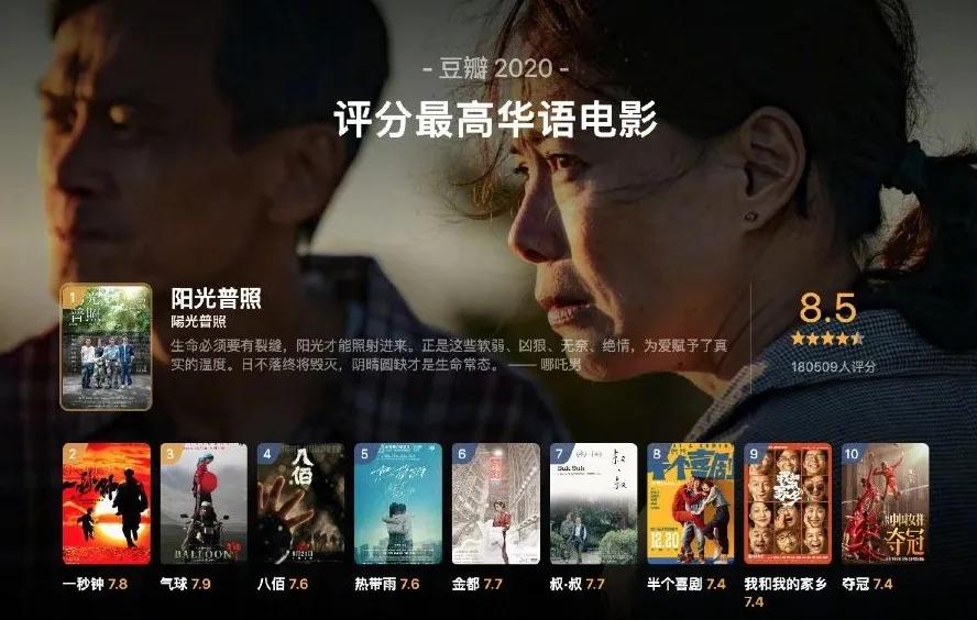 每到年末,各家媒体和网站都会公布年度榜单,作为国内影迷,最关注的可能就是豆瓣推出的2020年度电影榜单。