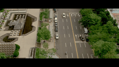 这段静止的街景,是在台北信义商圈封街拍摄的,开拍当天封了4条路,动员近200人与4、50辆大小车辆,更出动空拍机拍摄。
