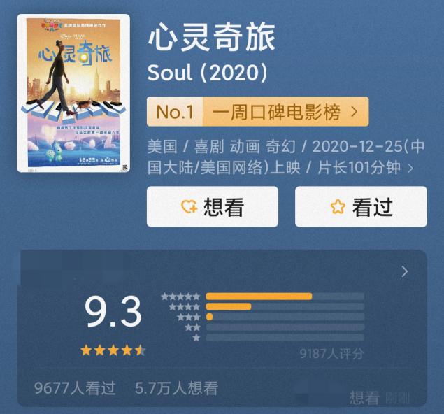 这部《心灵奇旅》上映后,暖心剧情和温馨的动画演绎带来了口碑的节节攀升。在某平台获得了9.3的高分,被认为是难得的佳作。