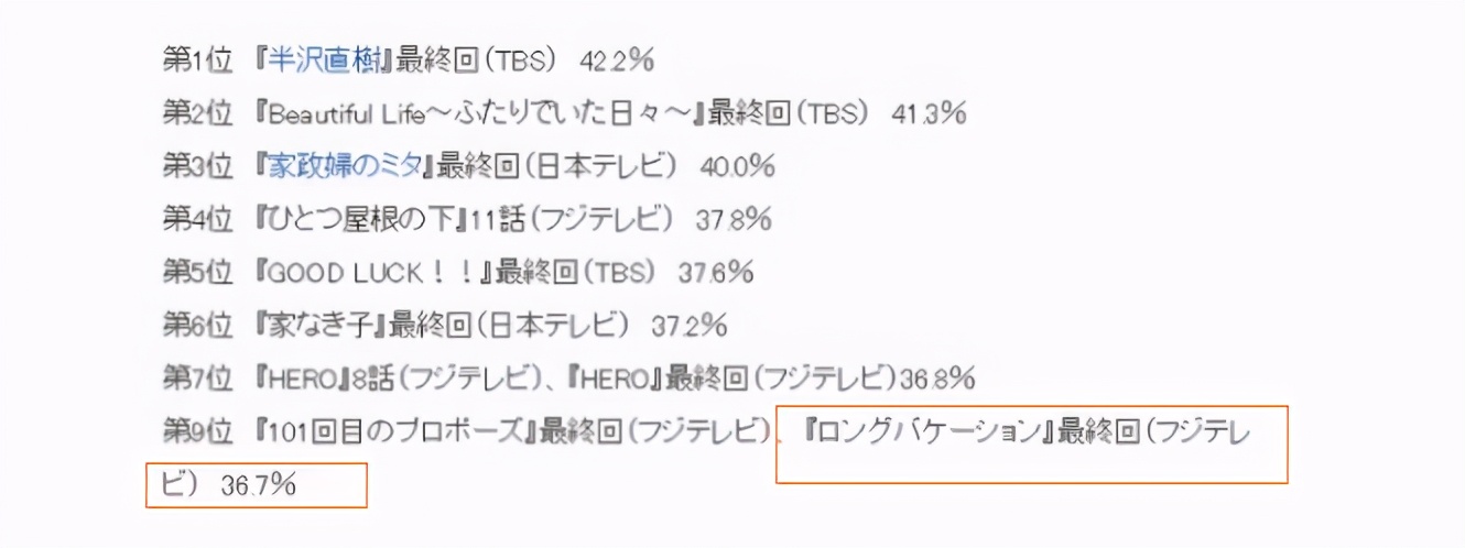 △ 日剧收视排行榜top10,第9为《悠长假期》