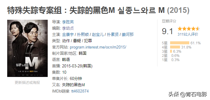 她之前的作品有《特殊失踪专案组m》,目前豆瓣9.1,是不输给《信号》的悬疑佳作。