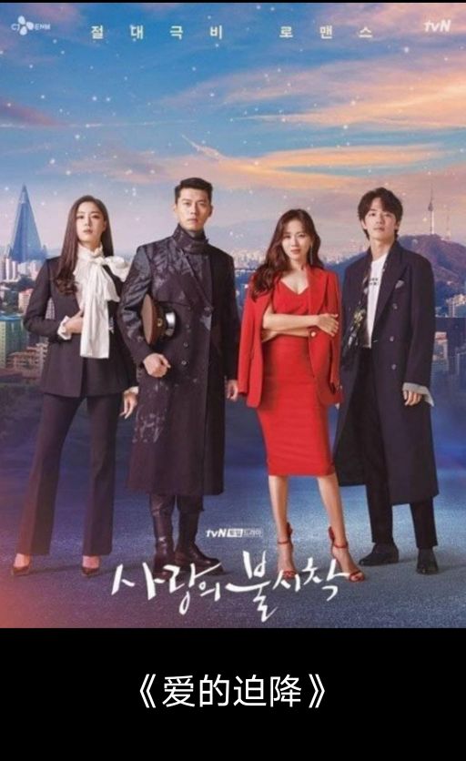 3、《爱的迫降》(crash landing on you)韩国 剧情简介:玄彬、孙艺珍确定出演tvn新剧《爱情迫降》(??? ???,暂译)。该剧由李政孝(《火星生活》)执导,讲述了韩国财阀继承女尹世利(孙艺珍饰)因滑翔伞事故被迫降到北韩,爱上默默守护她的北韩特级军官(玄彬饰)的故事。