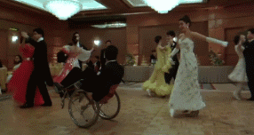 到现在也忘不了阿海坐轮椅跳华尔滋,十分逗趣的样子
