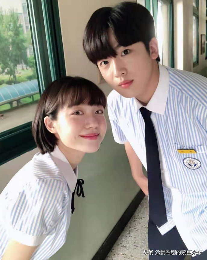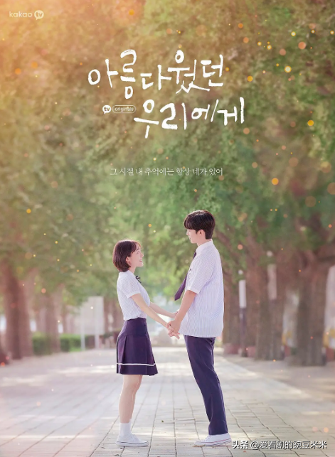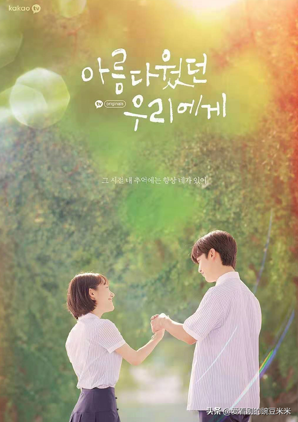 这部描写青涩初恋的校园爱情剧,在韩国的剧名是《致美丽的我们》, 男主金曜汉是男团idol出身,长相帅气,身材挺拔,还是很符合剧中人设的。