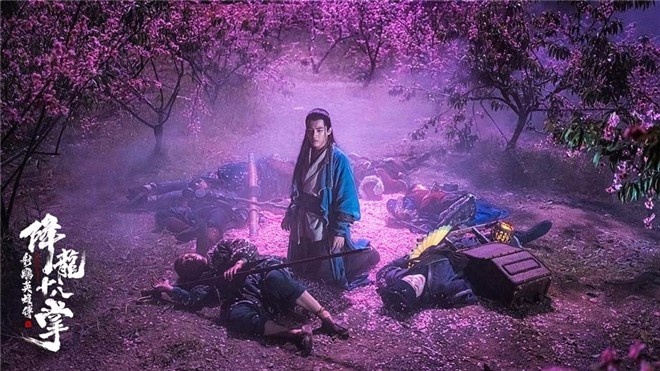 电影《射雕英雄传之降龙十八掌》的杀青图热血激燃,郭靖弯弓射雕的英武身姿,再现了原著里“郭靖接过弓箭,右膝跪地,左手稳稳托住铁弓,更无丝毫颤动,右手运劲,将一张二百来斤的硬弓拉了开来”、“弓弯有若满月,箭去恰如流星”的描述,将人物英姿勃发的阳刚气概传达得淋漓尽致。此外,相信不少观众已经发现,该图在构图上致敬了经典的83版电视剧《射雕英雄传》,瞬间引来一波回忆杀。