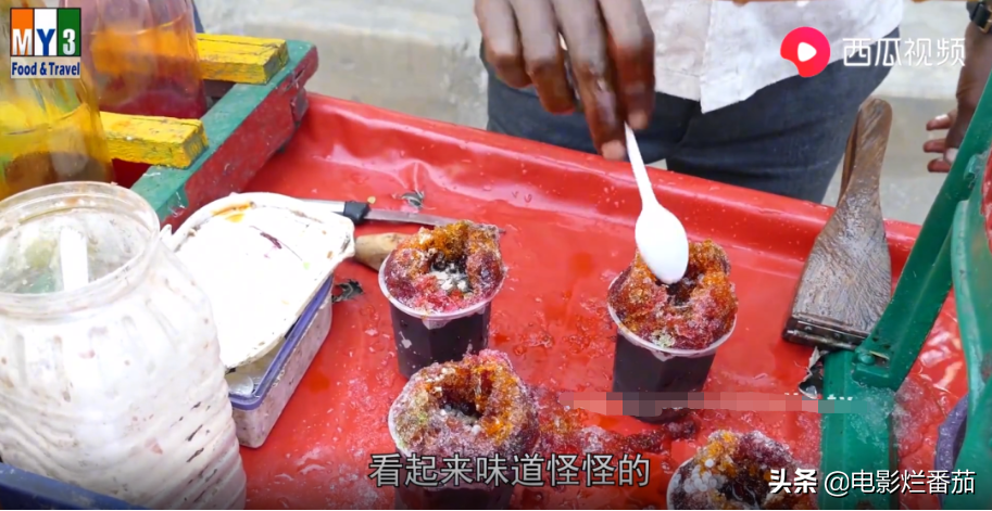 只是,整个制作过程,老板徒手接冰,甚至还用双手把冰压实的举动,小编有点疑惑:不是都说印度人不会用左手碰食物的吗?