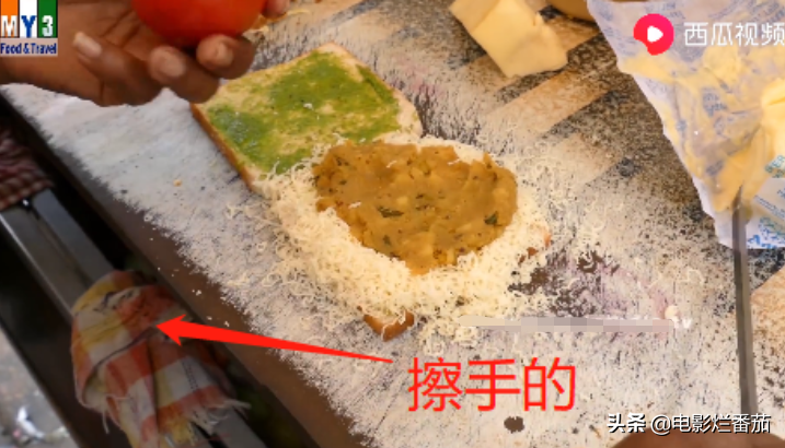 另外,老板在制作途中还有个擦手的动作,看那个毛巾上也是有不少污垢,难怪弹幕里都是“不敢吃!”的表示。