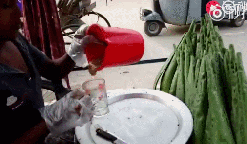 在印度,小贩们卖芦荟汁都是拿着一捆芦荟放在一旁,现做现卖,绝对天然。