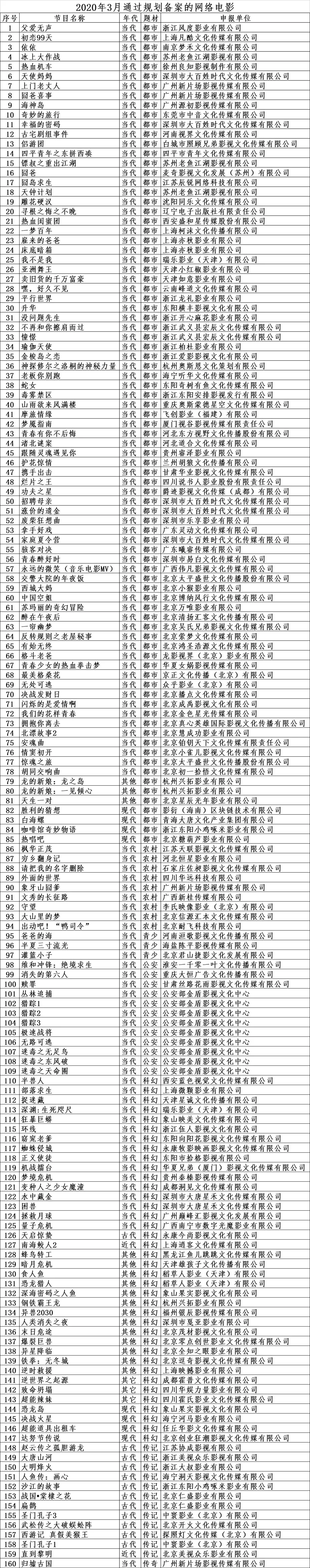 近日,广电总局发布2020年3月份全国重点网络影视剧拍摄规划登记备案情况,在通过规划备案的313部网络电影中,现实题材占比70%,重大现实题材9部,都市题材85部,农村题材9部,青少题材3部,公安题材12部,科幻题材38部,传记题材12部,传奇题材32部,武打题材60部,其它题材53部。