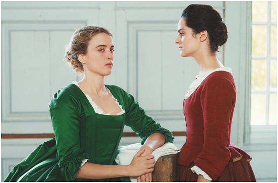 而法国的 《燃烧女子的肖像》 则用极其唯美的镜头语言呈现了18世纪两个女孩的爱情故事。