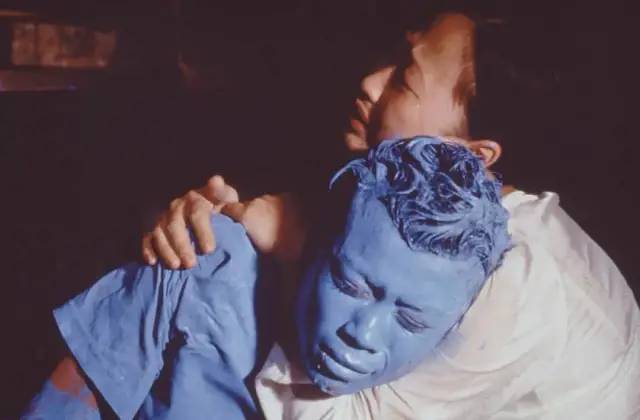 痛苦的三轮车夫嗑药后神智不清,他像老板娘的智障儿子那样,把蓝色的油漆涂满全身,没有去完成那个杀人任务。