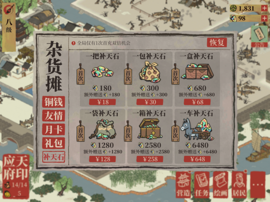 给《江南百景图》差评比较多的恰恰是付费用户,其实游戏内氪金要素拉满,只要想冲就一定能冲,冲的足够多时,你的应天府绝对比大部分玩家盖得更好、进度更快,充钱的正向回馈绝对稳。