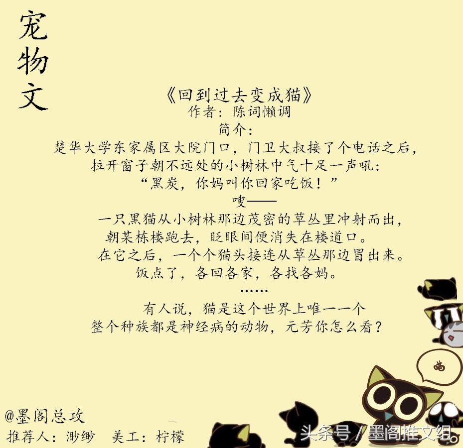 简介:楚华大学东家属区大院门口,门卫大叔接了个电话之后,拉开窗子朝不远处的小树林中气十足一声吼:“黑炭,你妈叫你回家吃饭!” 嗖—— 一只黑猫从小树林那边茂密的草丛里冲射而出,朝某栋楼跑去,眨眼间便消失在楼道口。 在它之后,一个个猫头接连从草丛那边冒出来。饭点了,各回各家,各找各妈。 …… 有人说,猫是这个世界上唯一一个整个种族都是神经病的动物,元芳你怎么看?