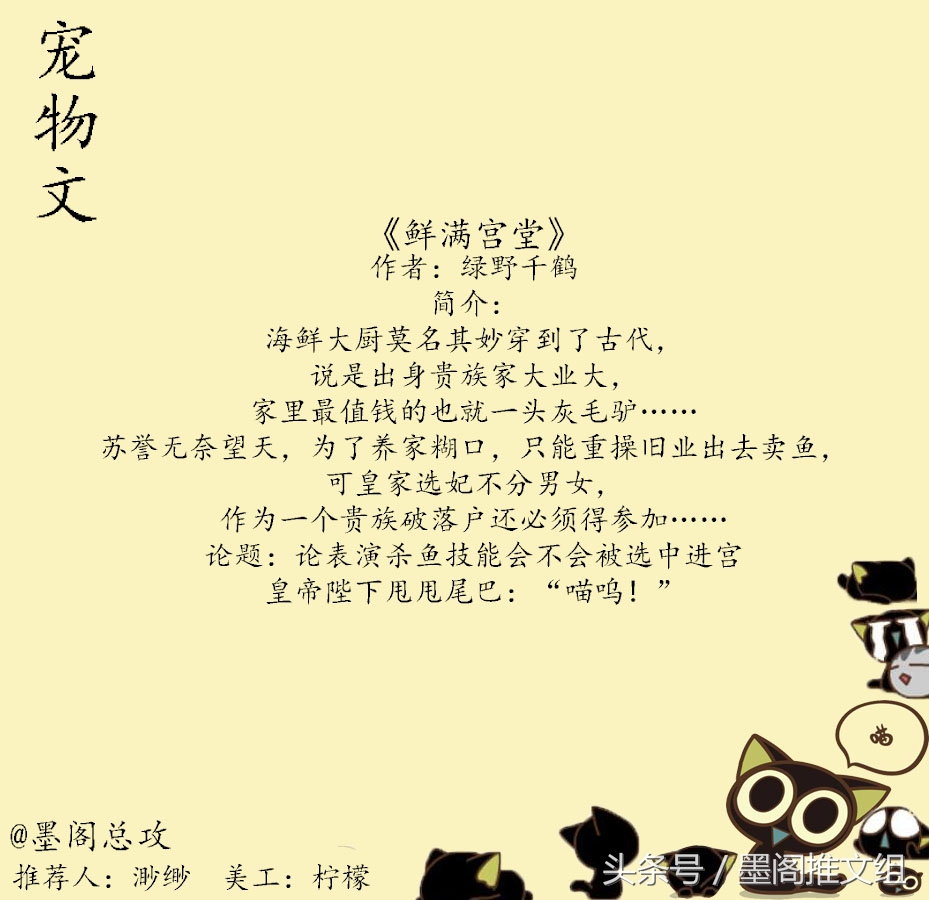 简介:海鲜大厨莫名其妙穿到了古代,说是出身贵族家大业大,家里最值钱的也就一头灰毛驴……苏誉无奈望天,为了养家糊口,只能重操旧业出去卖鱼,可皇家选妃不分男女,作为一个贵族破落户还必须得参加……论题:论表演杀鱼技能会不会被选中进宫皇帝陛下甩甩尾巴:“喵呜!”?