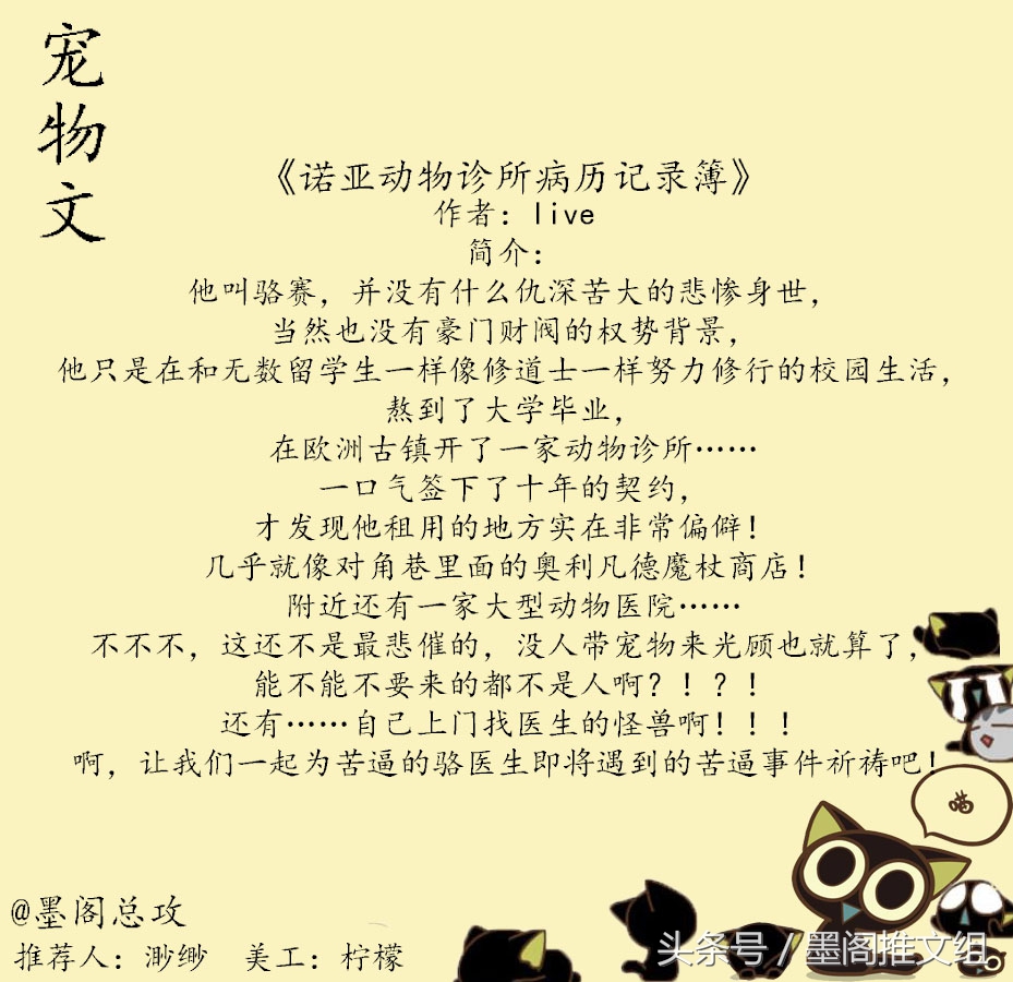 简介:他叫骆赛,并没有什么仇深苦大的悲惨身世,当然也没有豪门财阀的权势背景,他只是在和无数留学生一样像修道士一样努力修行的校园生活,熬到了大学毕业,在欧洲古镇开了一家动物诊所……一口气签下了十年的契约,才发现他租用的地方实在非常偏僻!几乎就像对角巷里面的奥利凡德魔杖商店!附近还有一家大型动物医院……不不不,这还不是最悲催的,没人带宠物来光顾也就算了,能不能不要来的都不是人啊?!?!还有……自己上门找医生的怪兽啊!!!啊,让我们一起为苦逼的骆医生即将遇到的苦逼事件祈祷吧!?