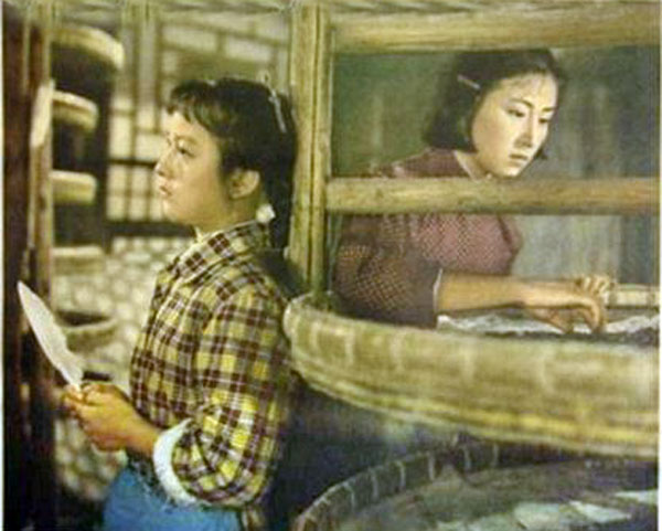 在船上,她遇见了从前的同学小梅。小梅是越剧团的演员,小萍从她那里知道剧团要排演一个新戏《蚕花姑娘》。小萍本来认为养蚕没有意思,现在听说要演养蚕的戏,便决定回家参加养蚕。同船的还有她的新嫂子柳巧莲。