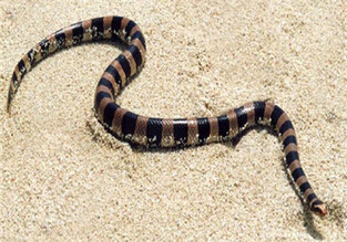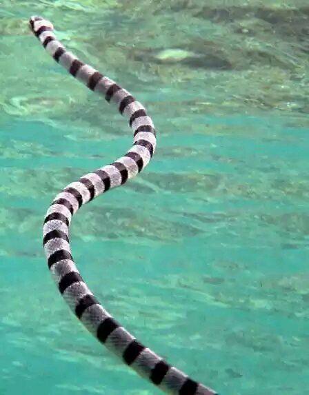 它可以潜入10丈深的水里,它那象桨一样的尾巴有利于迅速游动到达目的地。它属于水陆两栖蛇类。