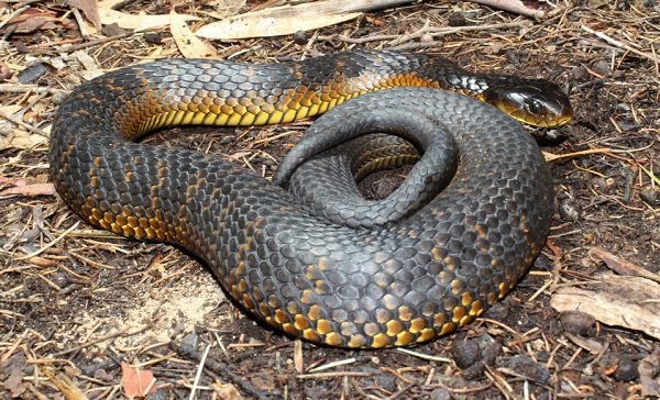 分布:澳洲。澳大利亚的大型毒蛇, 毒液含凝血剂和神经麻痹剂,常使人毙命。向人攻击之前,头和颈部膨胀成扁平状(眼镜蛇的方式)。虎蛇为常见种类,澳大利亚南方地区的沼泽地数量极多。体呈多种颜色,一般有褐色和黄色条纹。平均体长1.2公尺(4尺)。体长约1.3~1.6米。蛇身厚实,头部宽大,身体呈浅暗橘黄色或茶色,并伴有黄绿色、灰色或橘褐色箍环,生于澳大利亚和塔斯马尼亚岛半干旱区域。虎蛇攻击性强,含剧毒液,是致人死亡的主要蛇种。