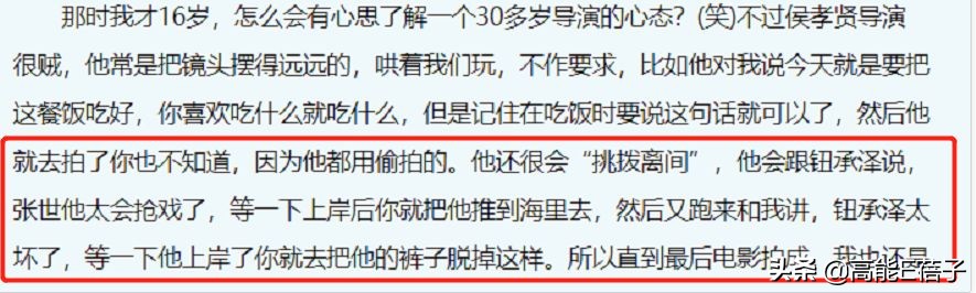他会跟钮承泽说:“张世太会抢戏了,等一下上岸后你就把他推到海里。”然后又跑去跟张世说:“钮承泽太坏了!上岸你就去把他裤子脱掉。”