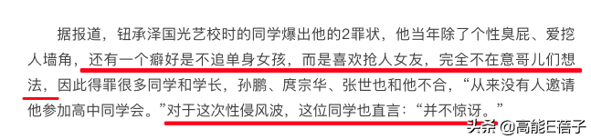 还没来得及为他的才华惋惜,已有国光同学出来爆料,说他有奇怪癖好,专爱抢人女友,发生性侵事件也不奇怪。