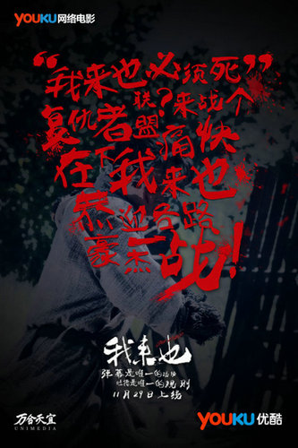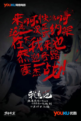 片中的主人公“我来也”,目光凶狠冷峻,身世迷离,又武艺高强,一旦拔刀、招招致命。这位神秘的大侠不仅在电影里的江湖中大展身手,这次又要在网络上放大招。“我来也”的战书一出,马上得到了广大网友的积极反馈迎战,众多观众纷纷来到优酷播放页下“茬架”。