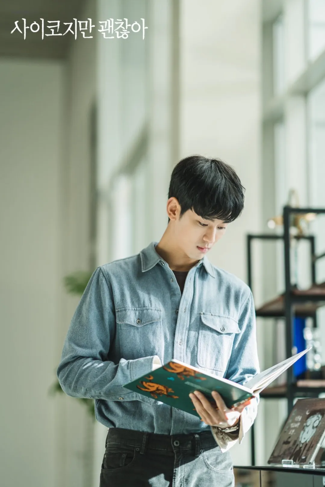 " 回到金秀贤新剧《虽然是精神病但没关系》,文钢太像是另一个都敏俊,外表、性格都十分高冷,但就是能够让女主女二都为他倾心。