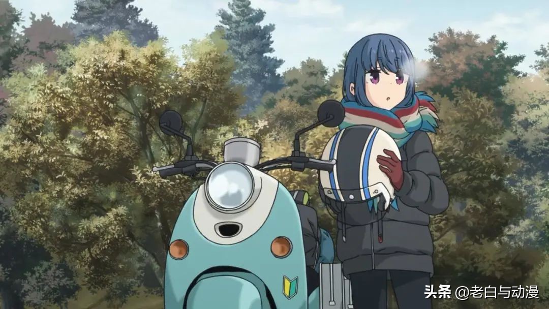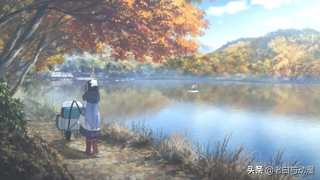 比如第一季里展示的凛酱去露营,山上是枯黄的树叶,一股浓浓的深秋袭来,在老白以往看过的日漫里,单论风景而言,《摇曳露营△》无疑是最具感染力的!