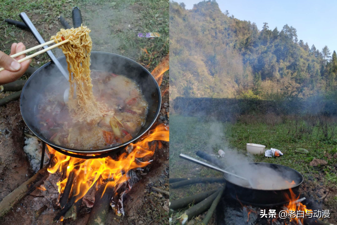 最后扔几张老白当初露营的照片,感受下露营的美好,坦白说在山里吃饭比在家里吃饭要香,那味道真能让你吃好几碗!露营完后,咱们得清理掉周围垃圾,把这里打扫干净,不能造成环境污染。