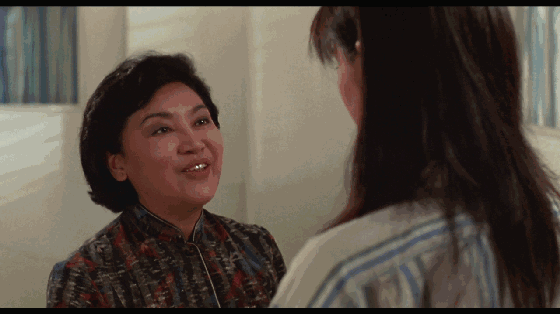 没有地方可去,只能再次回到发哥的住所,刚好碰到发哥的妈妈。正如看儿媳妇一般,发哥老妈一眼就相中了王祖贤,顺便还教会了她一个技能,如果噎着的话就把碗顶头上,然后用筷子戳。