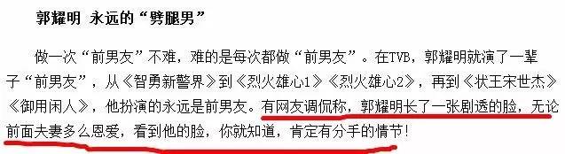 不过郭耀明在tvb中演的角色真心蛮悲剧的,不是前男友,就是大反派,角色简直就是tvb万年前男友的设定啊