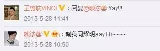 陈法蓉还在微博下评论“帮我向耀明问好”