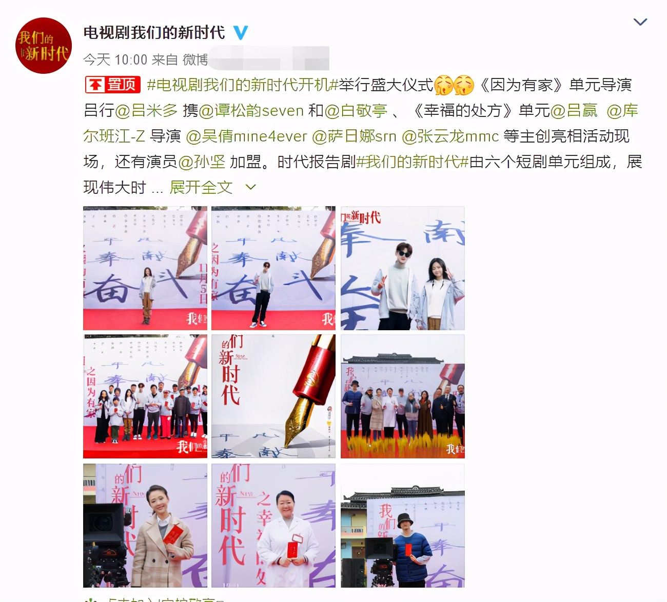 11月6日,《我们的新时代》这部电视剧的官方微博,官宣了该剧正式开机的消息。从消息中我们可以看到,这部电视剧主要采用的是多种小故事凭借的剧情,一部大剧这种有6个小短剧,其中《因为有家》跟《幸福的处方》的主演,也出现在了开机仪式上面。