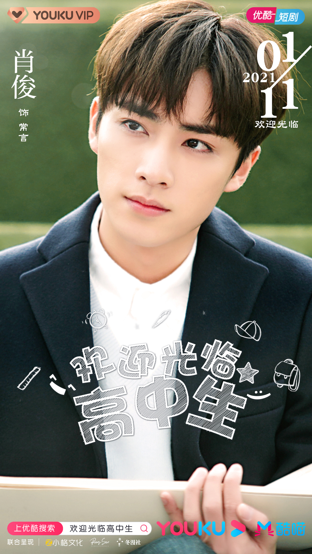 《欢迎光临高中生》于11日中午12点(北京时间)通过优酷首播,肖俊饰演主人公常言。剧中风度翩翩的高冷学霸常言和肖俊的极高适配度也一度成为首播后的热门话题。