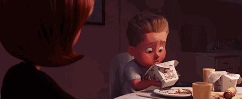 这一幕和《超人总动员2》中的小杰消失后,超能先生用曲奇饼干诱使他现身的桥段非常相似。