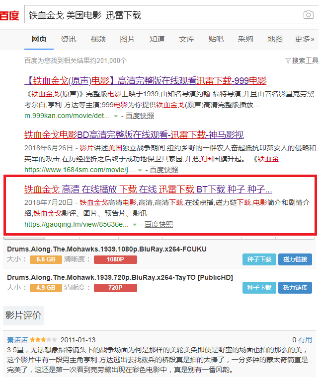 ▲该电影预告片截图,用百度也能轻易搜到完整片源