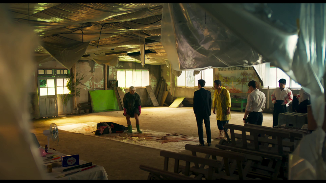 刘亚仁饰演的泰仁和刘在明饰演的昌福,他们是普普通通的边缘打工人,昌福腿瘸泰仁哑巴,他们平时拉着小货车卖卖鸡蛋,但真正的主业,是黑帮的“清道夫”,他们帮黑帮布置好二五仔被用刑的场地,等黑帮用刑二五仔狗带之后,他们会再次毕恭毕敬收拾现场,然后把尸体处理掉。